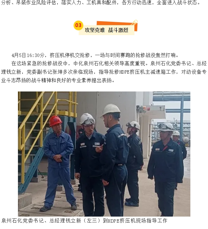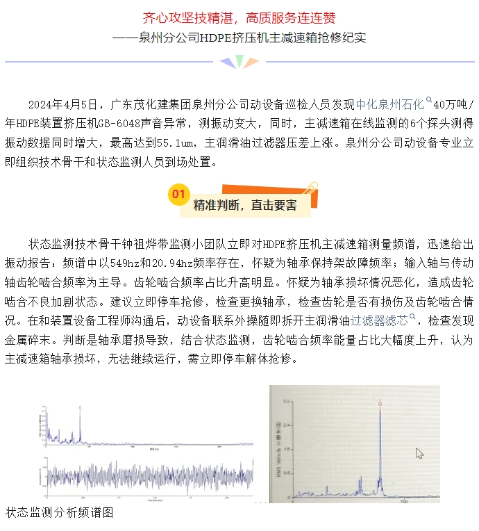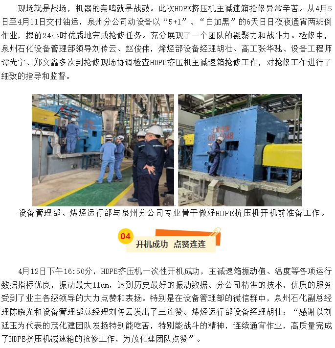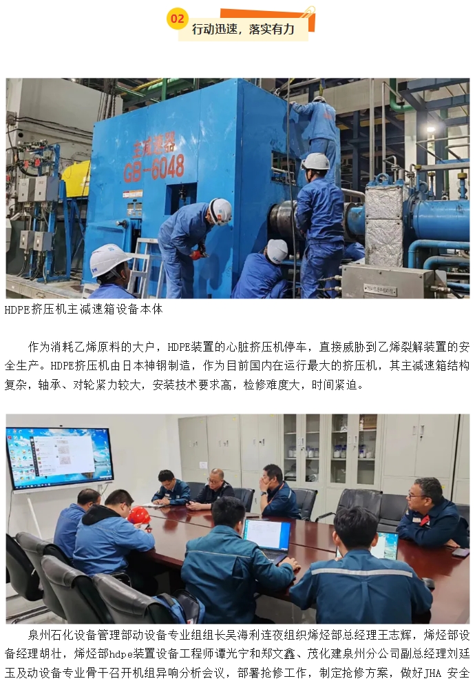 泉州分公司HDPE擠壓機(jī)主減速箱搶修紀(jì)實