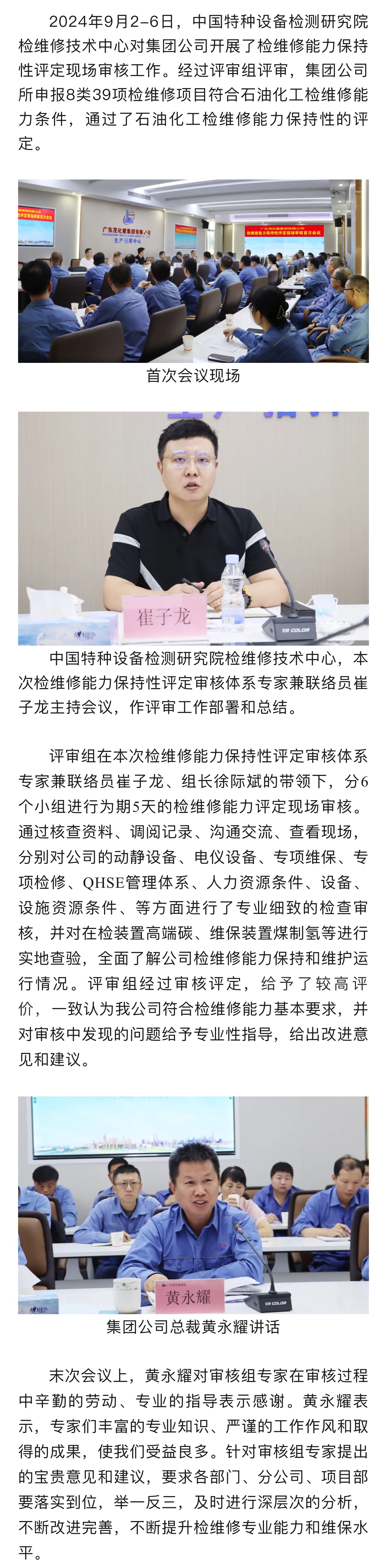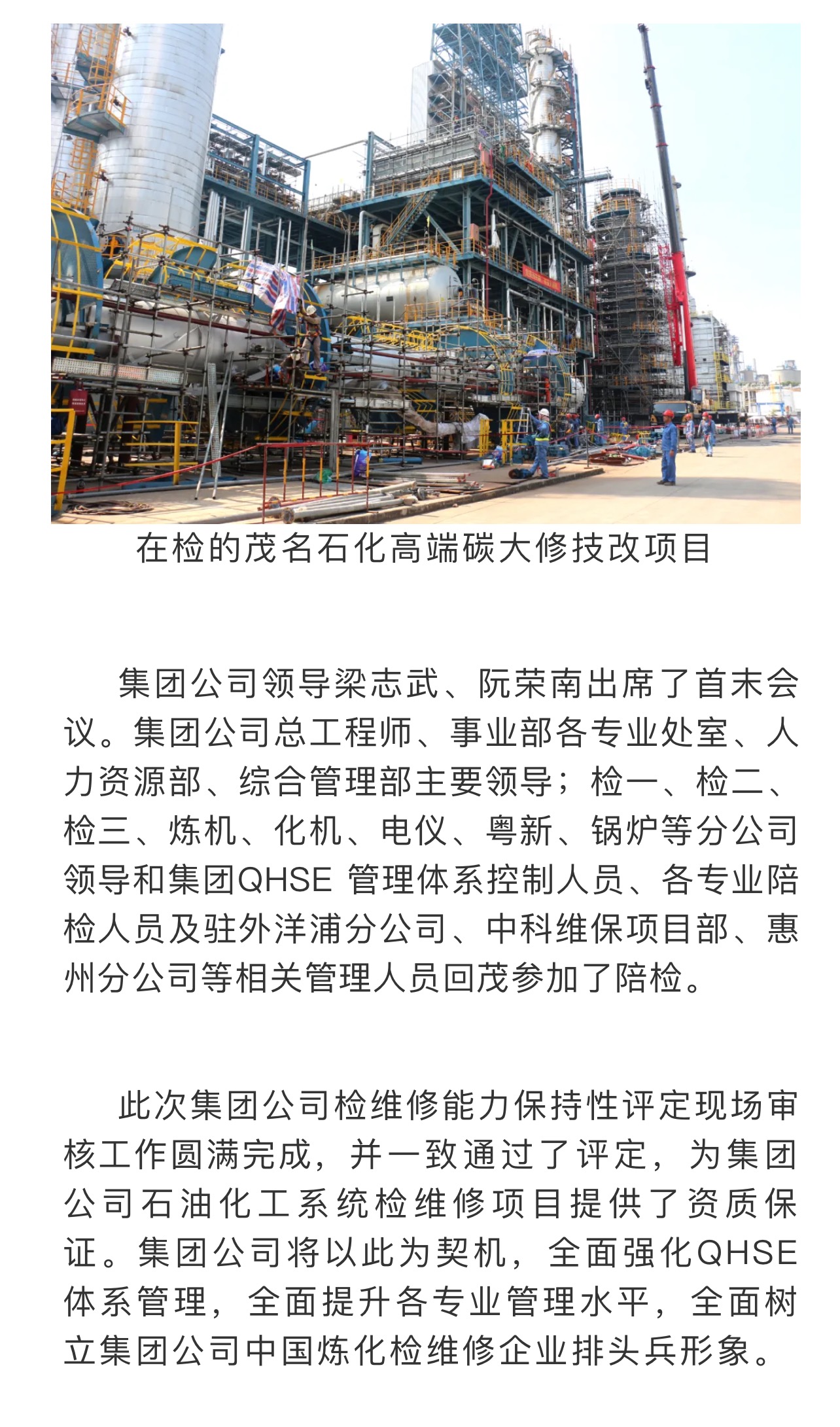 集團(tuán)公司檢維修能力保持性評(píng)定現(xiàn)場(chǎng)審核工作圓滿完成