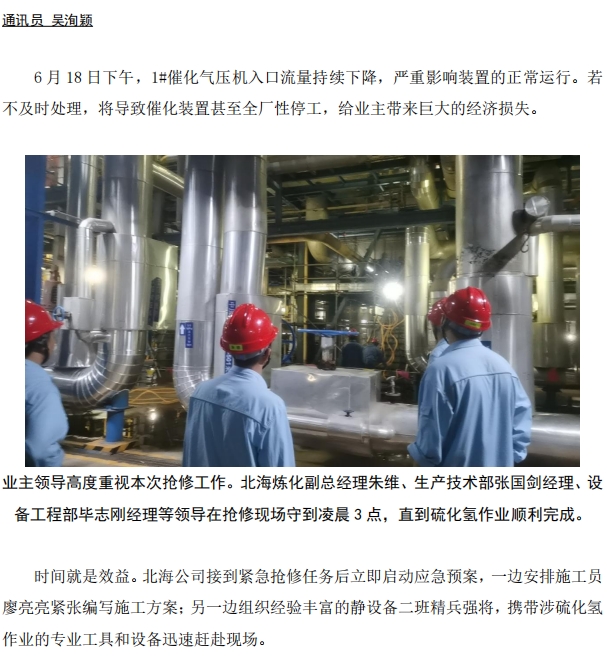 北海公司:5 小時高效搶修,力保催化裝置穩(wěn)定運(yùn)行