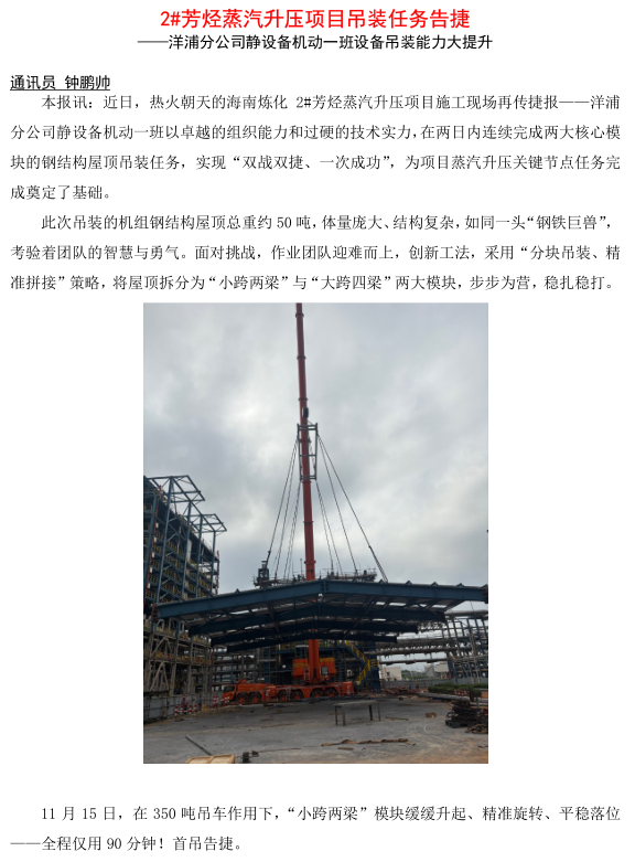 洋浦分公司靜設(shè)備機(jī)動一班設(shè)備吊裝能力大提升